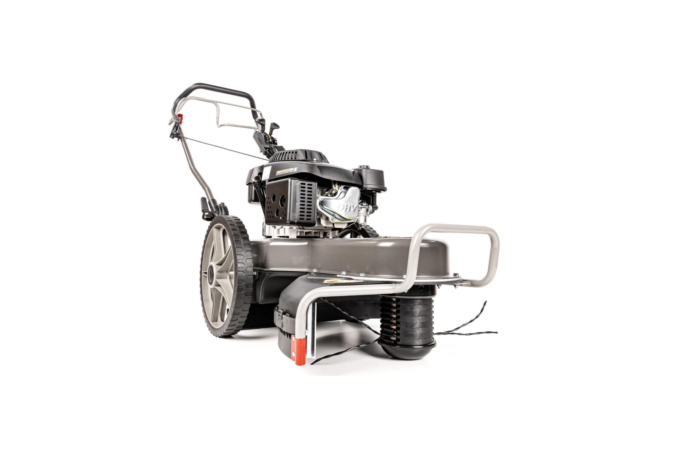 Składany uchwyt kosiarki zapewnia komfort podczas transportu, a po ustawieniu uchwytu w pionie i po opróżnieniu zbiornika paliwa, kosiarkę można umieścić w pionowej pozycji, aby zaoszczędzić miejsce podczas jej przechowywania.