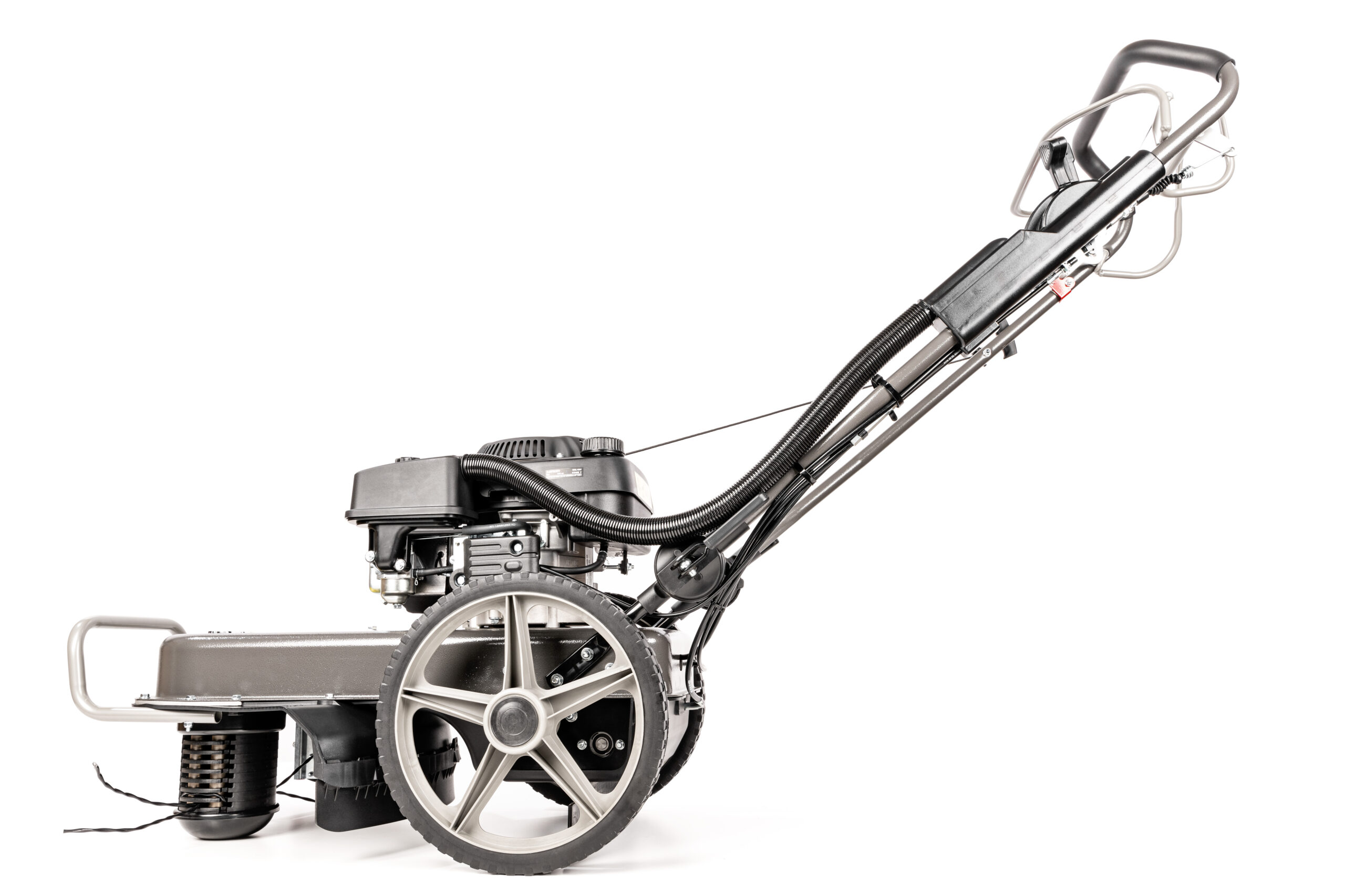 Kosiarka żyłkowa wyposażona jest w silnik Loncin LC1P70FC o pojemności 196 cm3 i mocy 3,2 kW/3600 obr./min. Maszyna posiada napęd i zmienną prędkość jazdy – 5 poziomów prędkości w zakresie 0.6 – 1.2 m/s, co pozwala na dostosowanie komfortu pracy w zależności od warunków. Szerokość robocza maszyny to 559 mm.