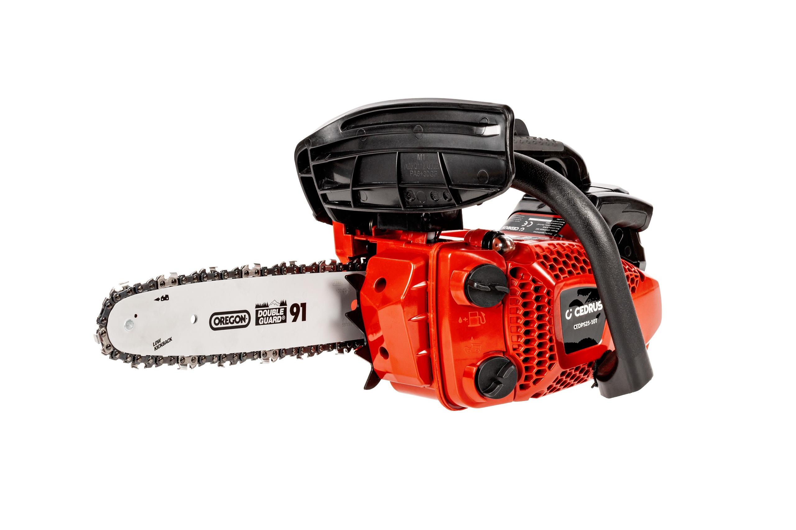 Pilarka spalinowa CEDRUS PS25-10T to idealne narzędzie do wycinki drzew, prac budowlanych i dekarskich oraz cięcia drewna opałowego. Wyposażona w silnik o mocy 1 kW (1,22 KM) i pojemności 25,4 cm³, sprawdzi się zarówno w lesie, jak i na działce. Krótka prowadnica Oregon o długości 25 cm ułatwia prace porządkowe w ogrodzie, umożliwiając cięcie cienkich gałęzi i drzew o niewielkiej średnicy. Doskonale radzi sobie w miejscach trudno dostępnych dla pilarek z dłuższą prowadnicą.